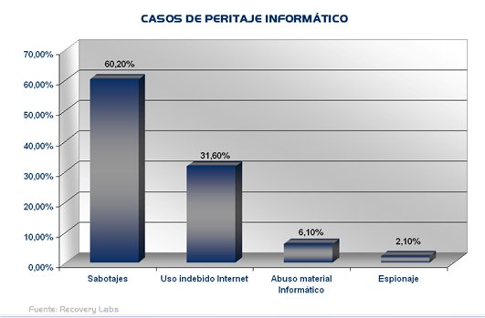 Según Recovery Labs, compañía especializada en el desarrollo y comercialización de aplicaciones y servicios de recuperación de datos, borrado seguro y peritaje informático, más del 60% de los casos para los que se solicita el servicio de peritaje informático están relacionados con el sabotaje, la competencia desleal o por mala fe de algún empleado de la empresa.