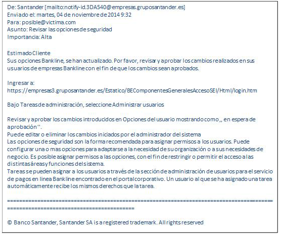 Alerta por ataque de phishing que simula ser el Banco Santander